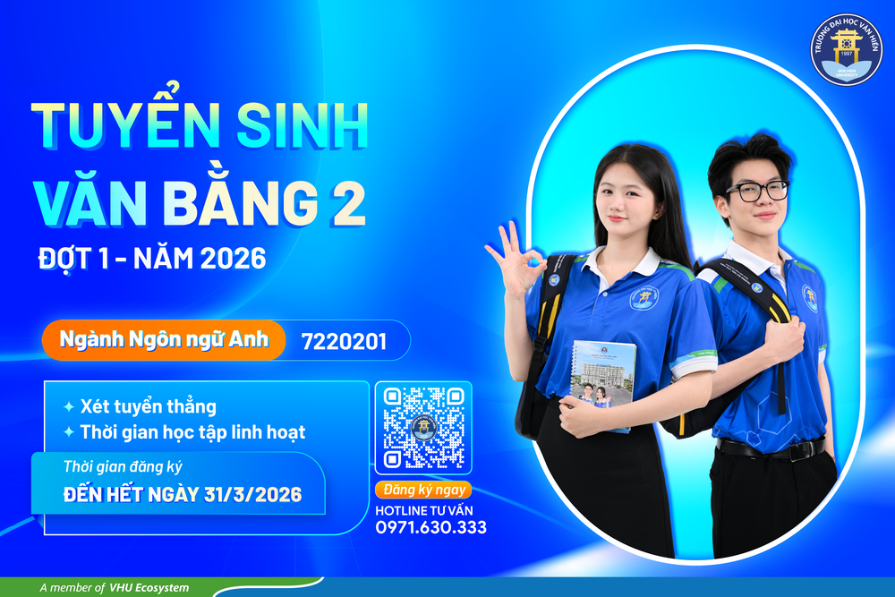 Trường Đại học Văn Hiến trân trọng thông báo tuyển sinh chương trình Văn bằng 2 ngành Ngôn ngữ Anh, mang đến cơ hội sở hữu văn bằng thứ hai và hoàn thiện kỹ năng ngoại ngữ chuyên nghiệp.