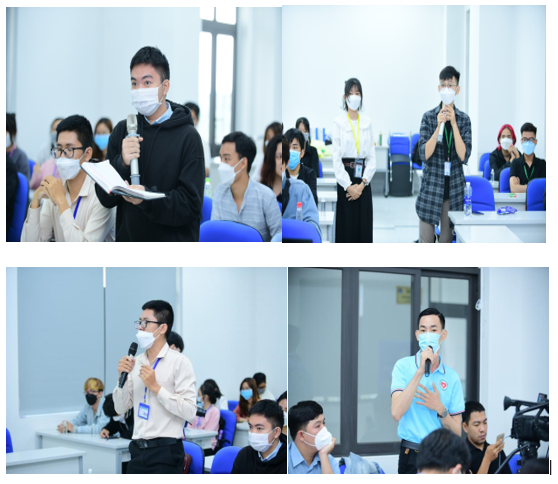 Sinh viên đặt câu hỏi cho khách mời ở buổi Báo cáo