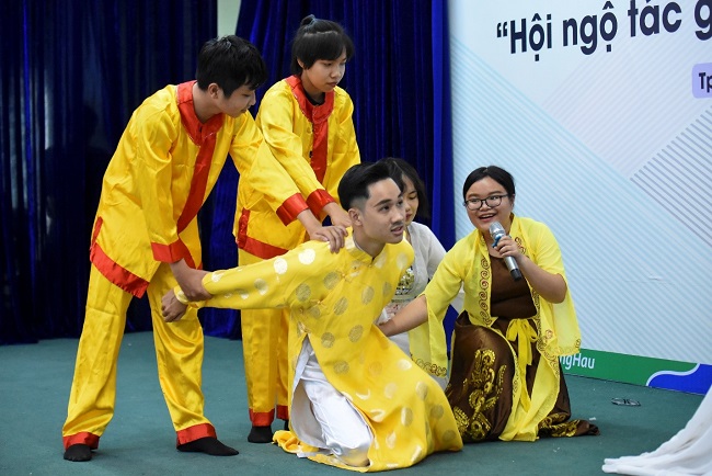 Tại sân khấu chương trình, các bạn sinh viên ngành Văn không những áp dụng những kiến thức về chuyên môn mà còn sáng tạo, đầu tư và dàn dựng công phu các tiết mục biểu diễn. Các bạn mang đến cho Thầy Cô và khán giả những màn hóa thân độc đáo thành những nhà văn lớn như Nguyễn Công Trứ, Cao Bá Quát,… tái hiện lại những phân đoạn trong truyện Thúy Kiều như Thúy Kiều bán mình chuộc cha, Thúy Kiều trao duyên,…