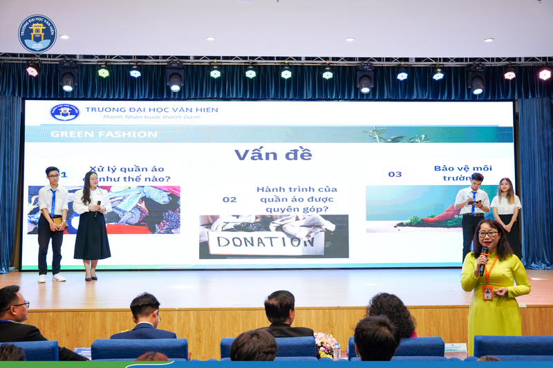 Phần trình bày của Nhóm sinh viên Khoa Kinh tế - Quản trị với Dự án “Sàn thương mại Thời Trang Xanh - Green Fashion” tương tác cùng Cô Nguyễn Thị Diễm Tuyết – Giám đốc Điều hành Nhà trường