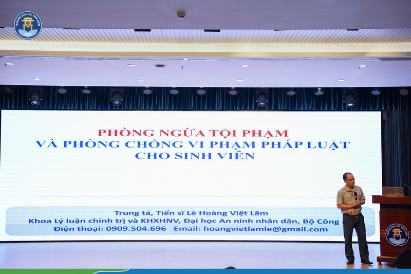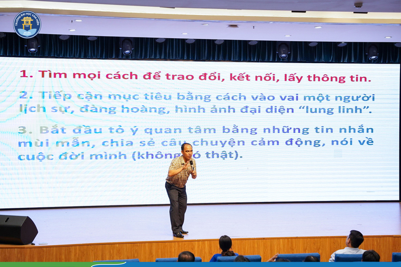 Đặc biệt, Tiến sĩ Lê Hoàng Việt Lâm đã đưa ra những lưu ý về Luật an ninh mạng, chú trọng đề cập đến việc bảo đảm an toàn trên không gian mạng với mong muốn giúp các bạn sinh viên Văn Hiến có thể sử dụng các nền tảng mạng xã hội chính thống một cách thông minh qua việc đăng tải, tiếp nhận thông tin một cách thông minh và có chọn lọc tránh bị lừa đảo, dẫn dắt để chia sẻ, lan truyền những thông tin sai lệch sự thật.