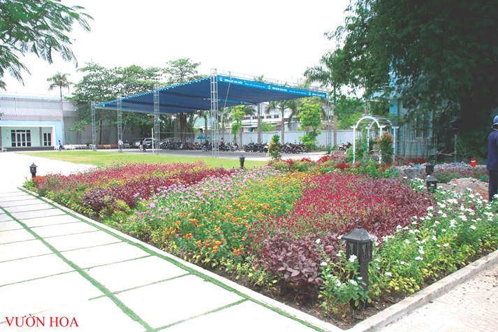 Còn gì tươi mát thoải mái hơn mỗi buổi sáng hay trưa nắng, sau những tiết học dài được ngồi dưới các tán cây xanh bên cạnh vườn hoa và các tiểu cảnh. Nhà trường chú trọng việc tạo môi trường xanh cho sinh viên được thu giản một cách tốt nhất.