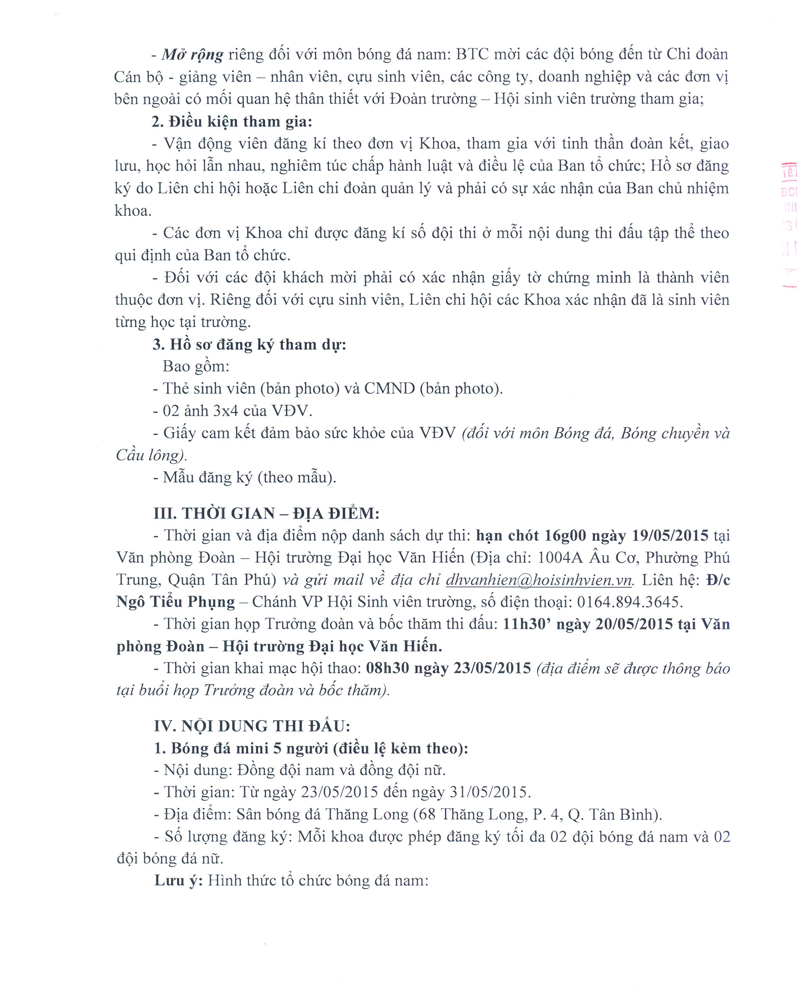 Thông báo về việc tổ chức Hội thao sinh viên lần thứ XIV, năm học 2014-2015