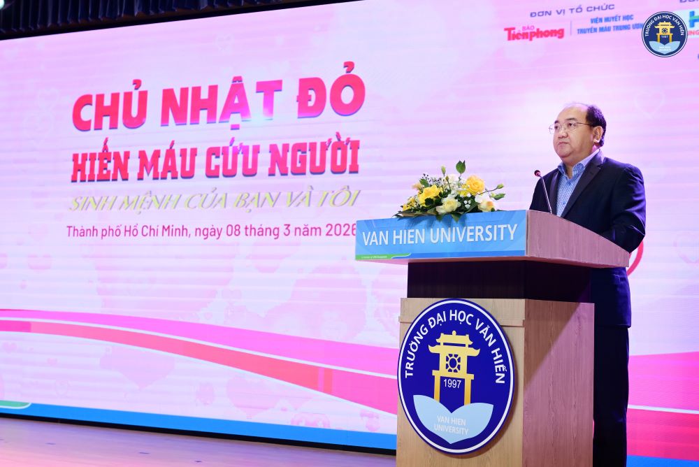 PGS. TS Nguyễn Minh Đức – Hiệu trưởng Trường Đại học Văn Hiến phát biểu tại chương trình Chủ Nhật Đỏ 2026.