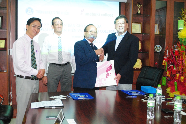 Ngày 09/09/2015 tại trường Đại học Văn Hiến, cơ sở 1004A Âu Cơ, đã diễn ra buổi Lễ ký kết biên bản ghi nhớ giữa trường Đại học Văn Hiến và Đại học Anabuki, Nhật Bản. Tham gia buổi lễ, về phía trường Đại học Văn Hiến: PGS.TS Trần Văn Thiện- Hiệu trưởng; TS. Frank Gerke- Trưởng khoa Ngôn ngữ và văn hóa nước ngoài; thầy Trần Đức Dũng – Trưởng Ban kế hoạch điều hành; thầy Trần Quốc Trường - Thành viên Ban kế hoạch điều hành.