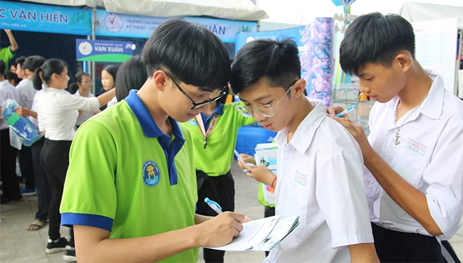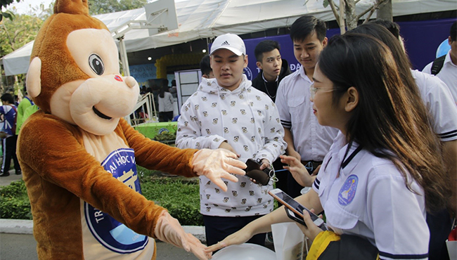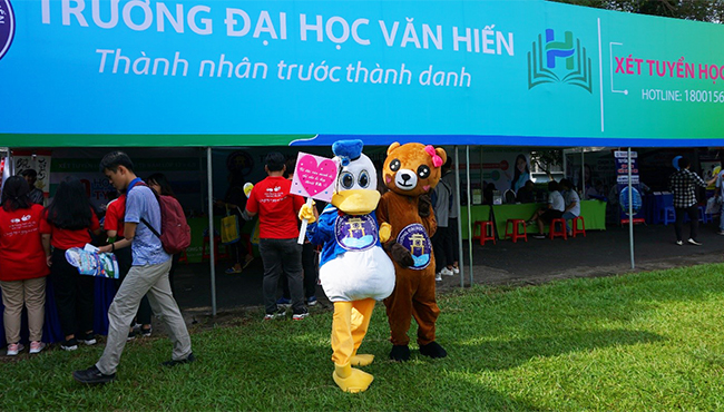 Đến với gian hàng tuyển sinh của Trường Đại học Văn Hiến học sinh không chỉ được lắng nghe các Thầy Cô giáo là những chuyên gia tư vấn về bí quyết chọn ngành, chọn trường mà còn được giao lưu nhận nhiều quà tặng cùng các anh chị sinh viên Văn Hiến.