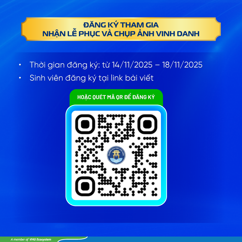 Để đảm bảo công tác tiếp nhận thông tin và mang đến một buổi Lễ tốt nghiệp 2025 thật sự đáng nhớ và ý nghĩa, Trường Đại học Văn Hiến thông báo về thời gian đăng ký tham dự, nhận lễ phục và chụp hình vinh danh, cụ thể như sau: