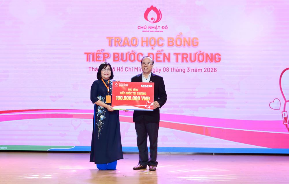 Bên cạnh hoạt động hiến máu, “Chủ nhật Đỏ 2026” là sự gắn kết giữa hoạt động nhân đạo và hỗ trợ giáo dục. Thông qua chương trình, Ban Tổ chức đã chính thức quyên góp được 100 triệu đồng vào Quỹ “Tiếp sức đến trường”, nhằm nâng bước các sinh viên có hoàn cảnh khó khăn vững bước trên con đường học tập.