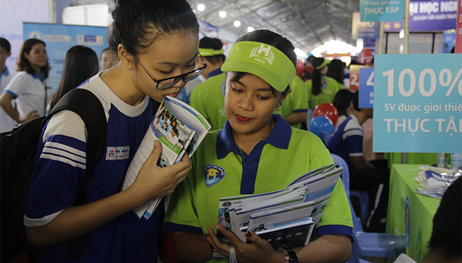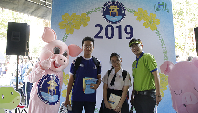 Đến với gian hàng tư vấn của trường ĐH Văn Hiến các em học sinh không chỉ được tư vấn về các ngành nghề đào tạo của trường mà còn nắm bắt được nhiều thông tin về thị trường việc làm cho mỗi nhóm ngành. Đặc biệt, đội ngũ tư vấn đã chia sẻ về cách học đại học, cách làm sao để có thể chinh phục nhà tuyển dụng. Từ đó giúp các em chuẩn bị trước tâm lý để sẵn sàng hoà nhập với cuộc sống sinh viên vào tháng 8/2019.