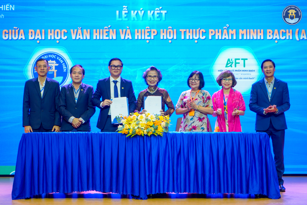 Trường Đại học Văn Hiến hoàn tất ký kết hợp tác cùng Hiệp hội thực phẩm Minh Bạch trong Lễ ký kết.