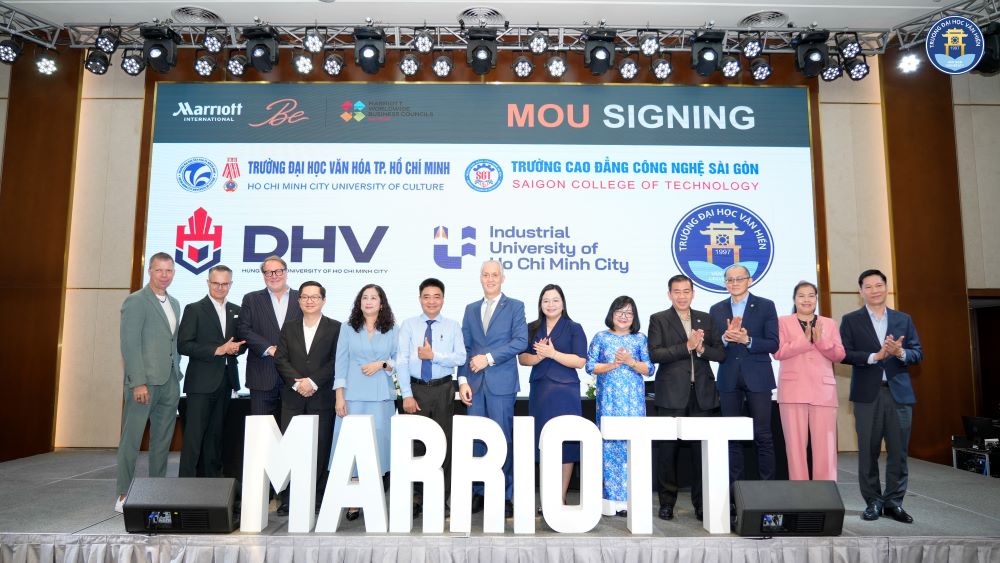 Vừa qua, Trường Đại học Văn Hiến đã chính thức ký kết Biên bản thỏa thuận hợp tác với Hội đồng Kinh doanh Việt Nam thuộc Tập đoàn Marriott International, tập đoàn khách sạn và du lịch hàng đầu thế giới với mạng lưới vận hành rộng khắp và tiêu chuẩn dịch vụ quốc tế. Đây là bước tiến quan trọng trong hành trình nâng cao chất lượng đào tạo, thúc đẩy liên kết doanh nghiệp và kiến tạo môi trường học tập gắn liền với thực tiễn cho sinh viên Văn Hiến.