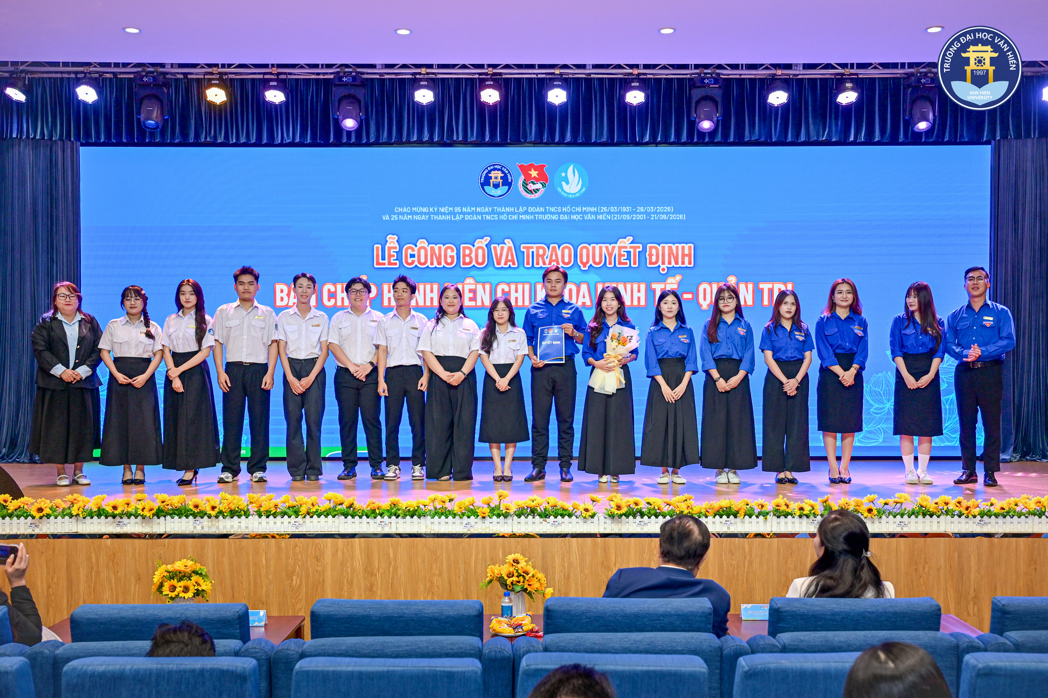 Hội nghị cũng đánh dấu bước chuyển giao thế hệ đầy ý nghĩa thông qua nghi thức ra mắt Ban Chấp hành Liên chi các Khoa nhiệm kỳ mới. Những thủ lĩnh trẻ đã chính thức nhận quyết định công nhận, bảng tên và cam kết giữ vững ngọn lửa nhiệt huyết để đưa công tác Đoàn – Hội của Trường Đại học Văn Hiến ngày càng phát triển vững mạnh.
